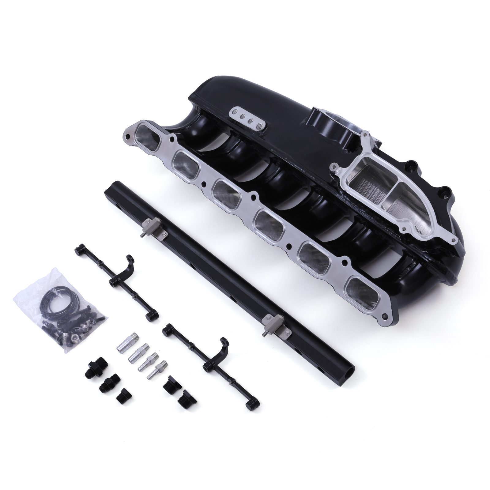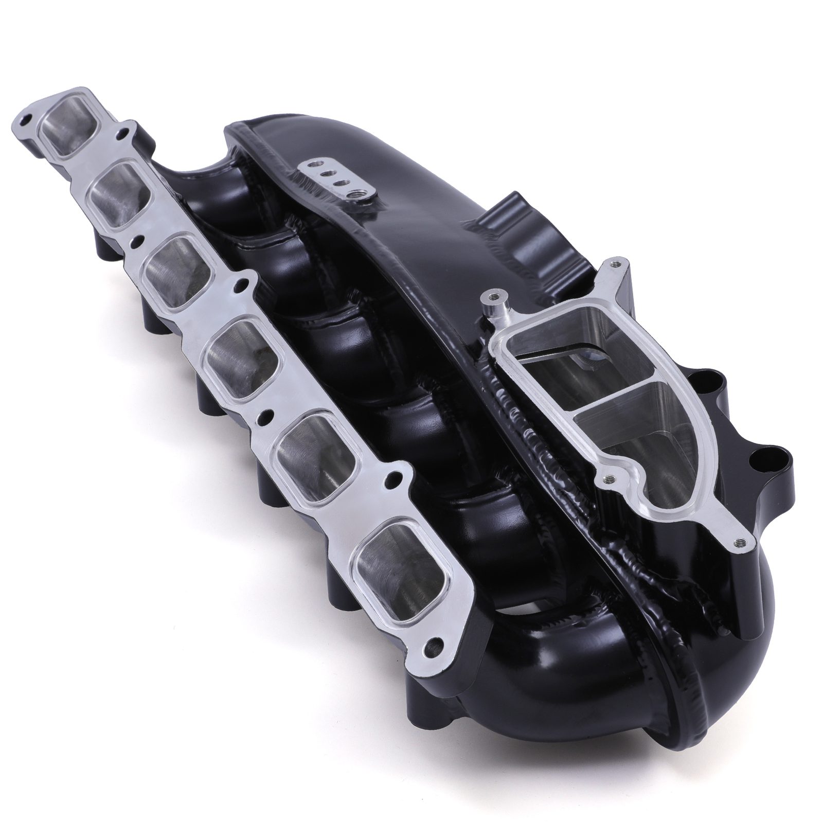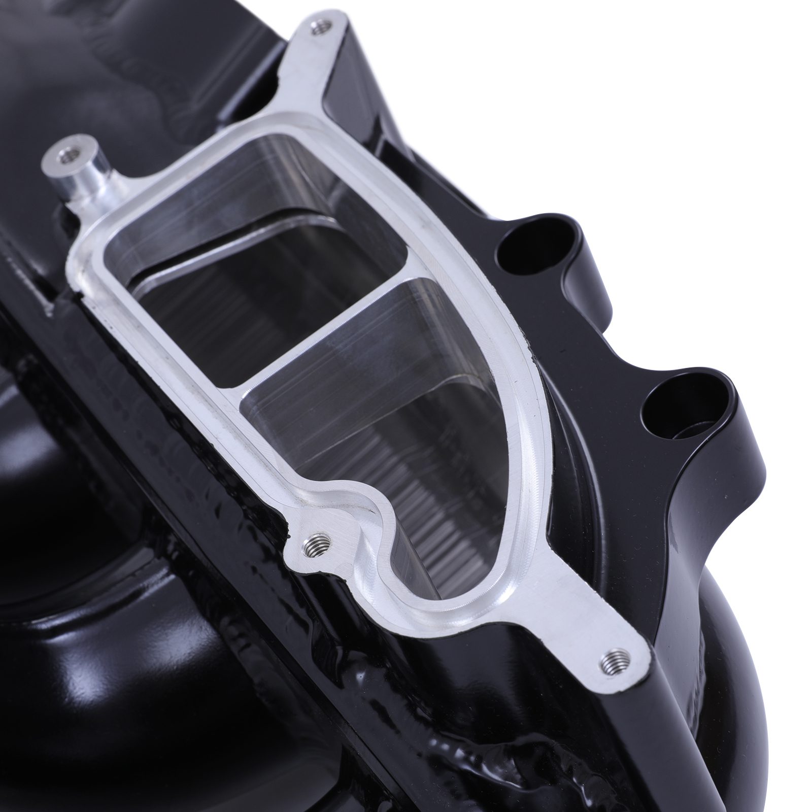 This all-black aluminum inlet manifold for BMW N55 engines combines refined aesthetics with high-performance engineering. Designed to optimize airflow and withstand high boost pressures, it delivers improved throttle response and consistent power delivery. Its sleek, powder-coated finish elevates any engine bay with a modern, motorsport-inspired look.