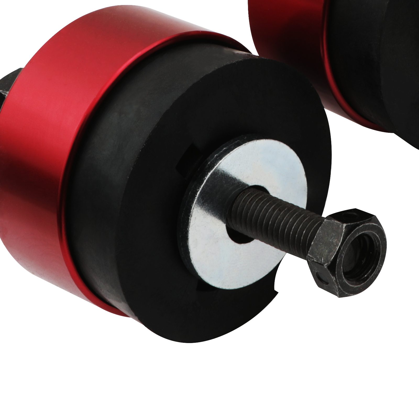 • Anodized red finish with black bushings.