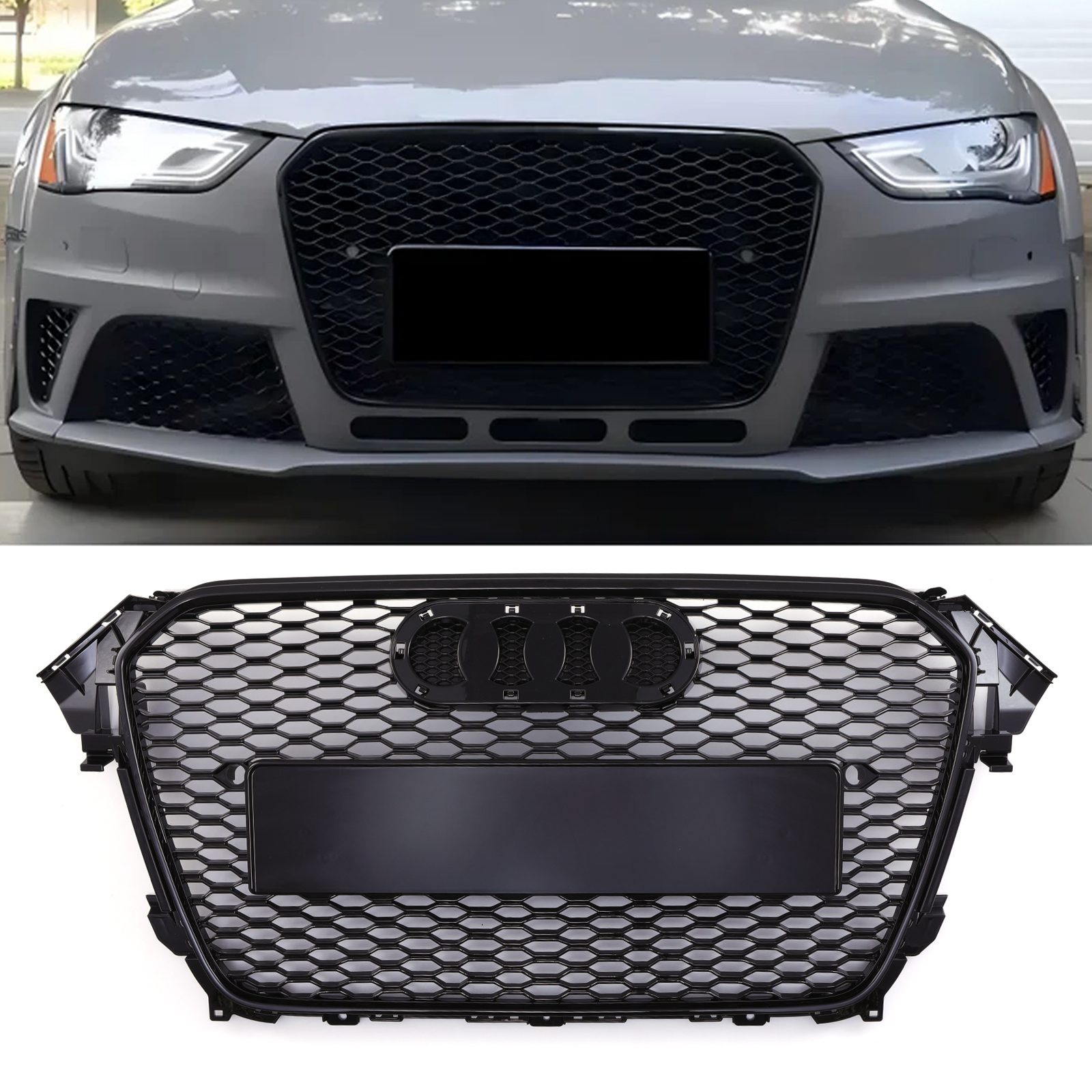 RS4 Style Front Honeycomb Grille Gloss Black – Audi A4 B8.5 13-16 90.90