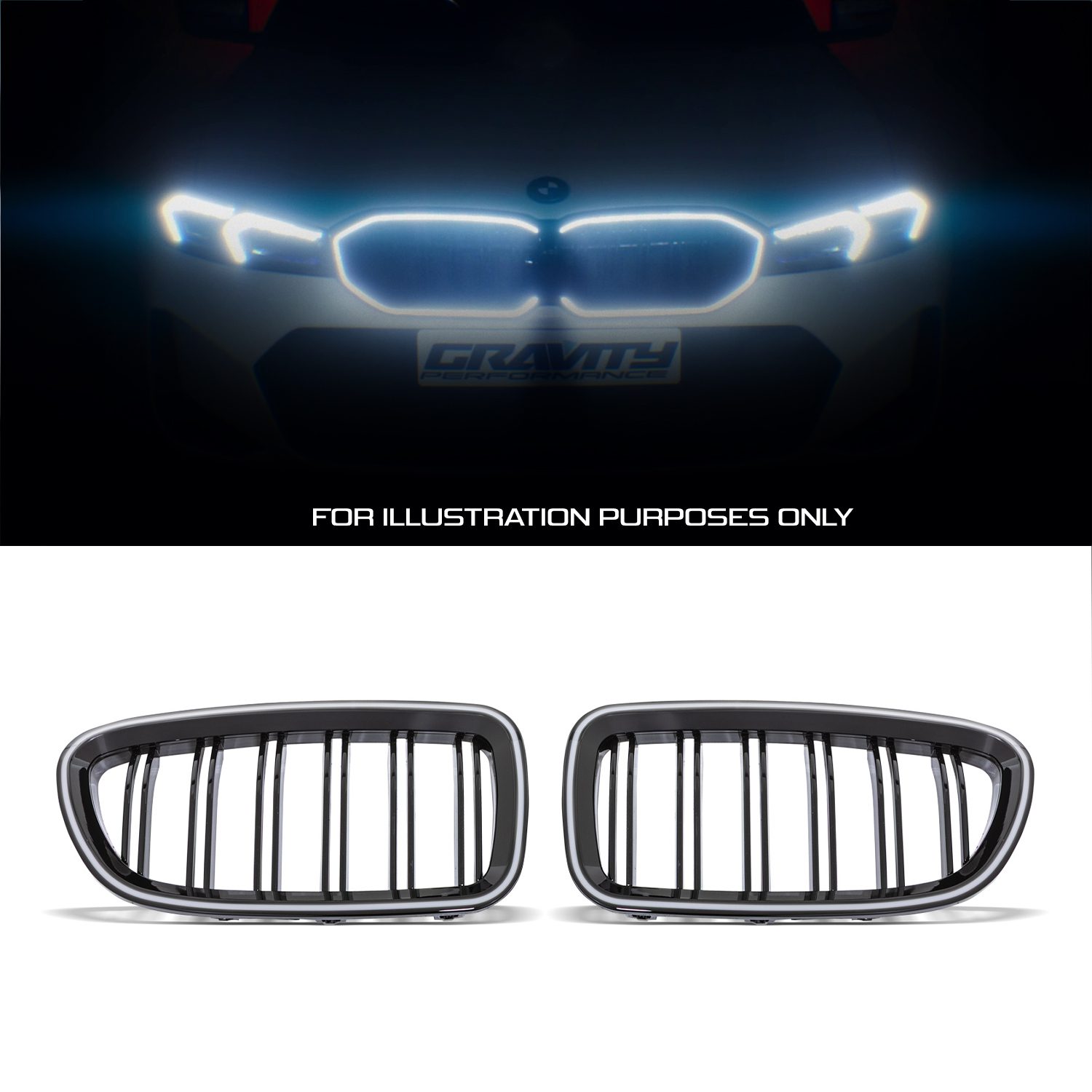 Gravity Performance LED grilles have integrated LED lights, providing both improved visibility and style. Our LED grilles feature plug and play installation and guaranteed perfect fitment.