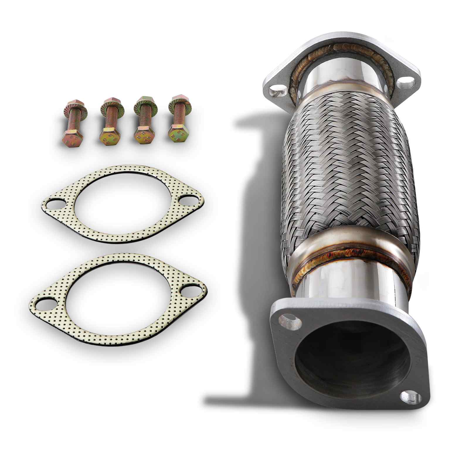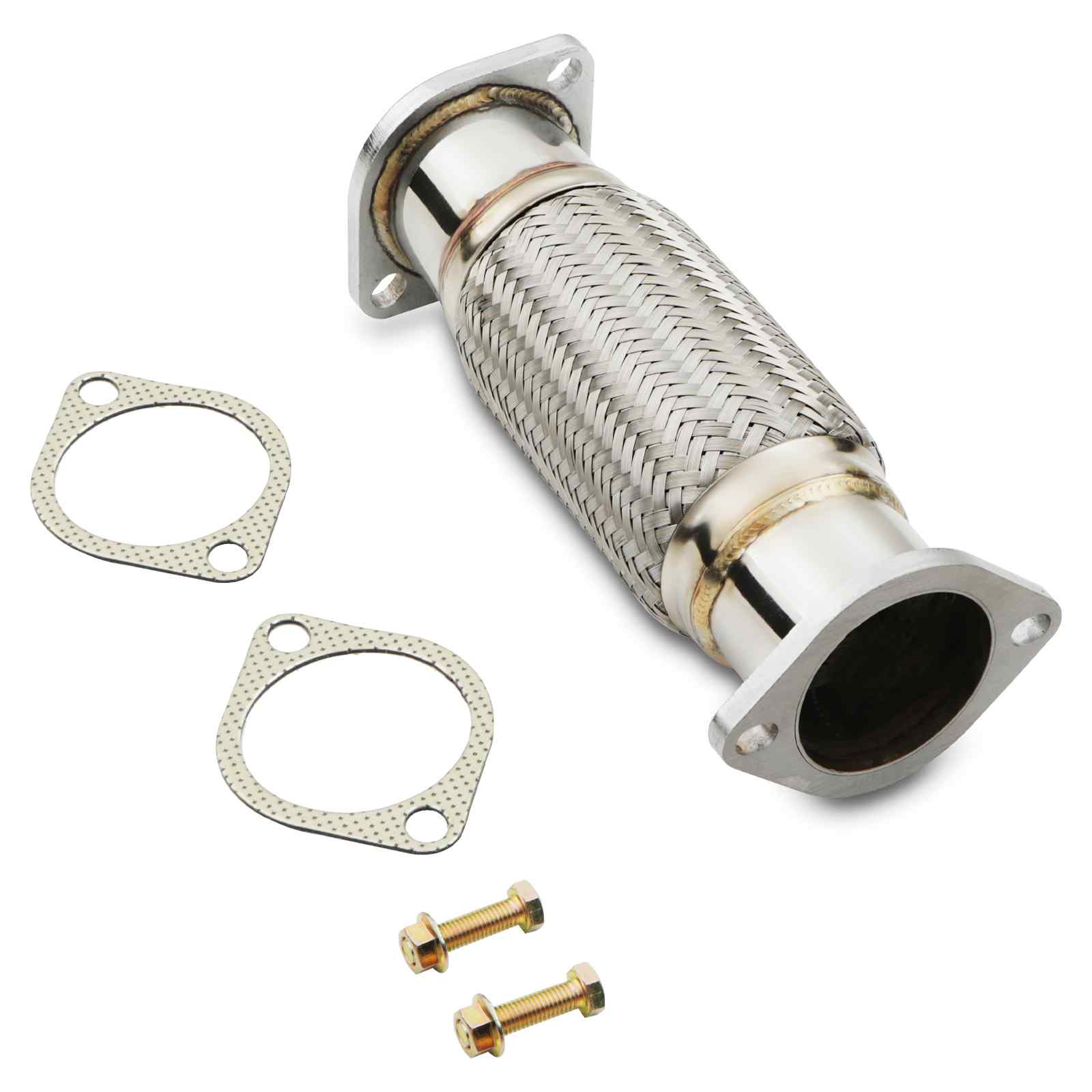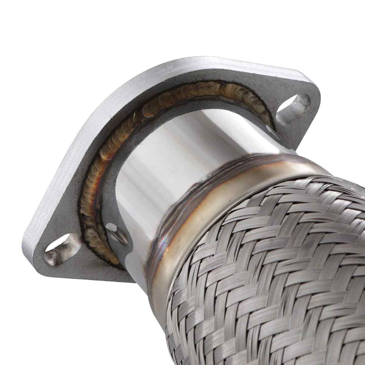 Our flexible decat pipe also includes a flexi joint, allowing the rear section of the exhaust to flex independently of the downpipe and turbo elbow. This is very important on a lowered car, where frequent knocks to the exhaust will eventually cause damage to the downpipe, turbo elbow and the manifold.